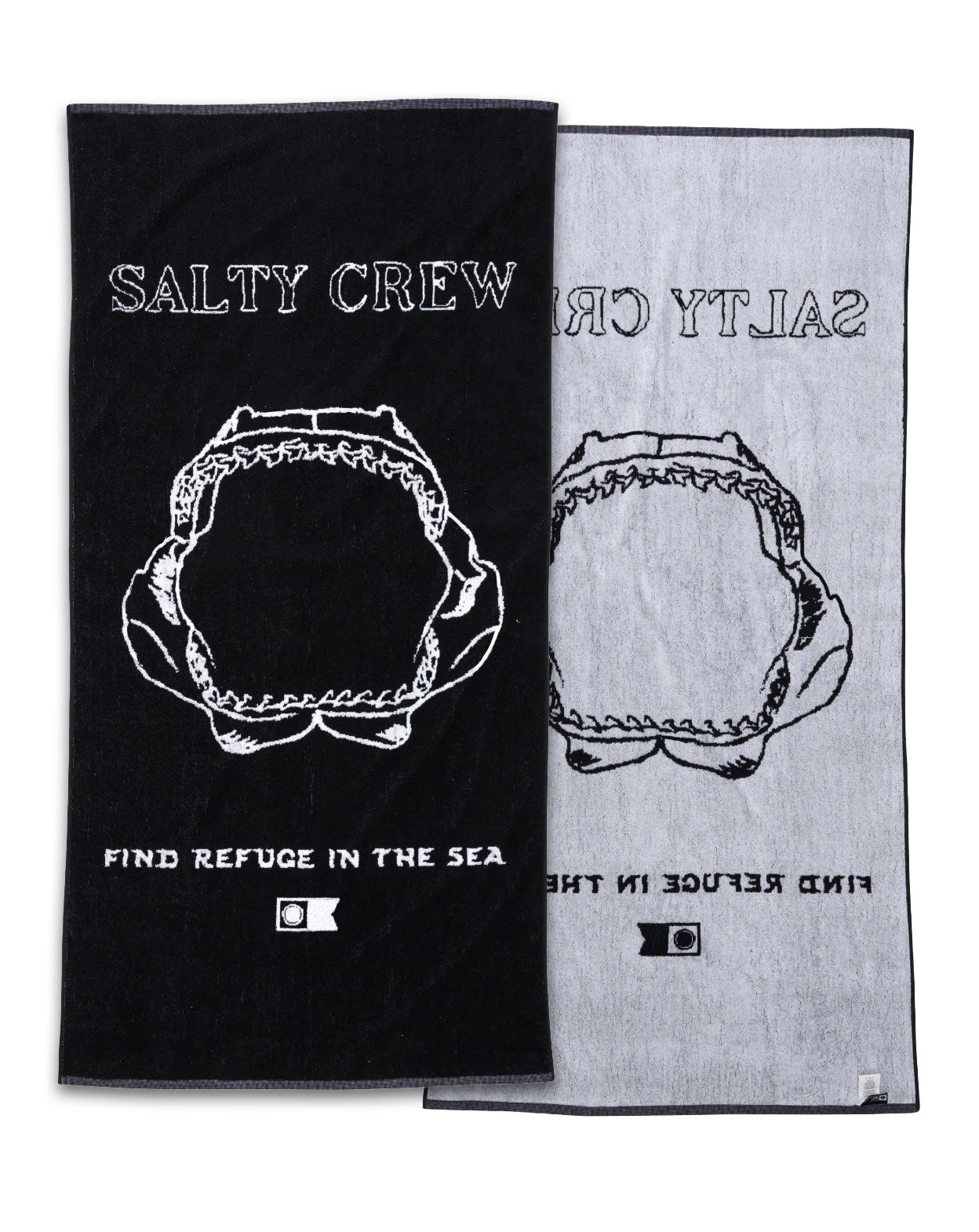 The Jawbone Towel in Black is a large, heavyweight terry towel with a two-tone jacquard design. Made from 100% cotton for excellent absorbency, perfect for long days by the water.