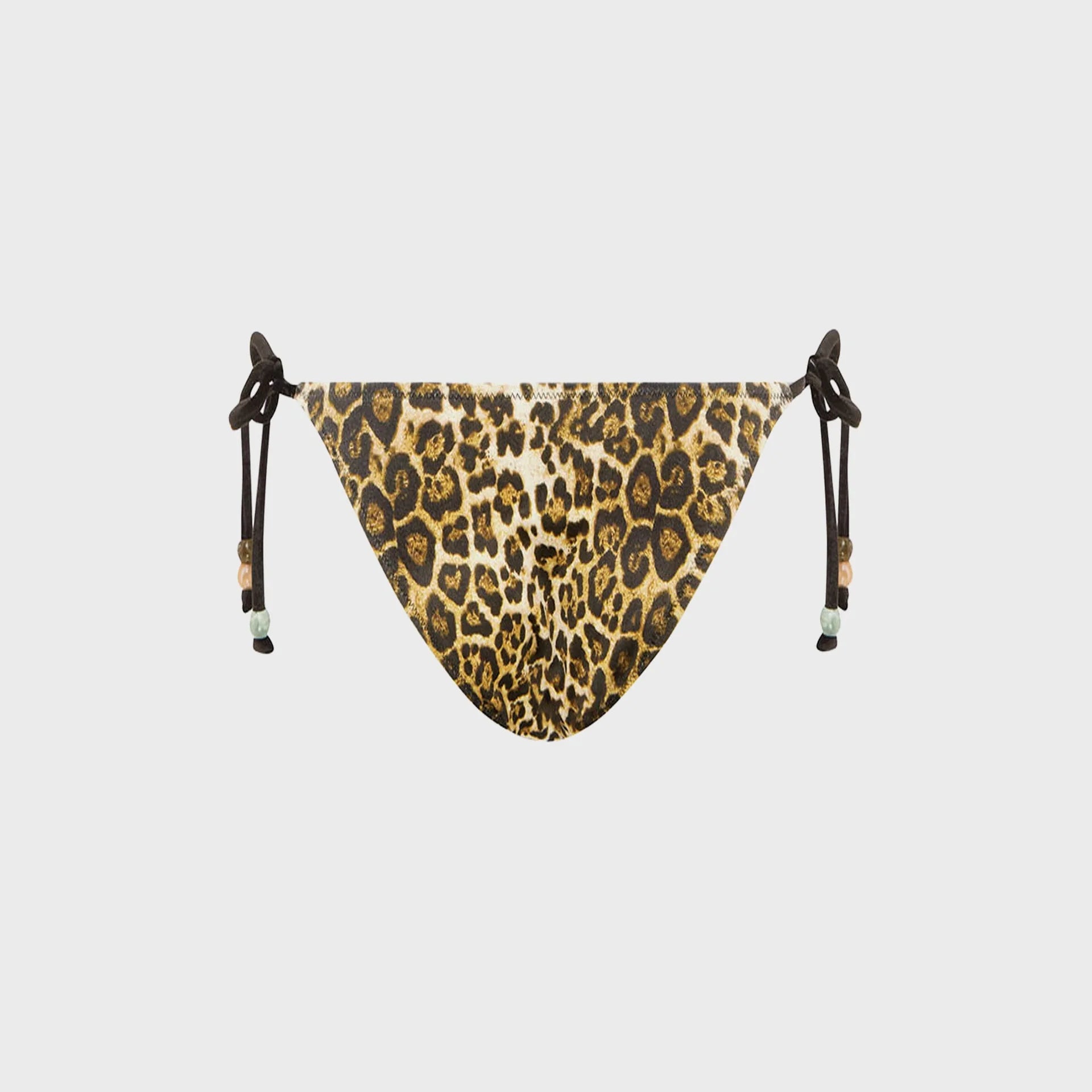 The 90's Tie Pant in Earth Crimp is crafted from rich brown buttery-soft crimped fabric adorned with neutral beads on the side ties.