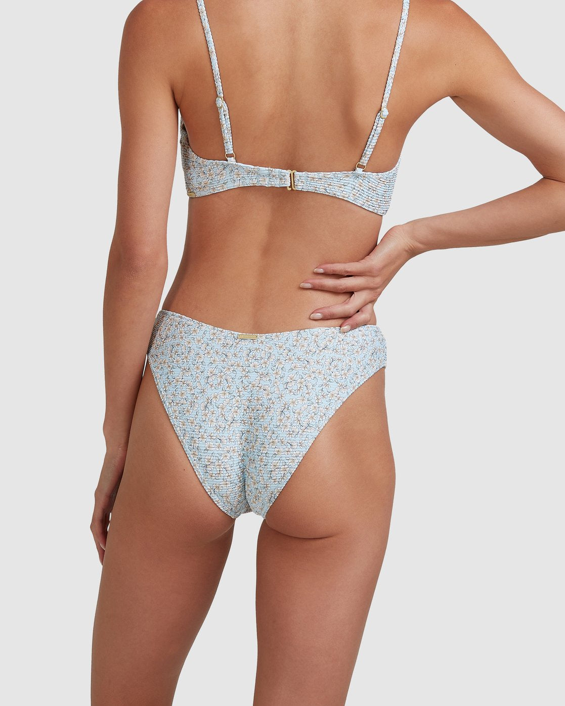 Bringing substance to a solid swimsuit, the Somedaze Bondi Bikini Bottom is made from a textured swim fabric, mixing swimwear function with a throwback lingerie-inspired feel. Features a mid rise leg opening with wider sides and contoured back shaping for medium bum coverage.
